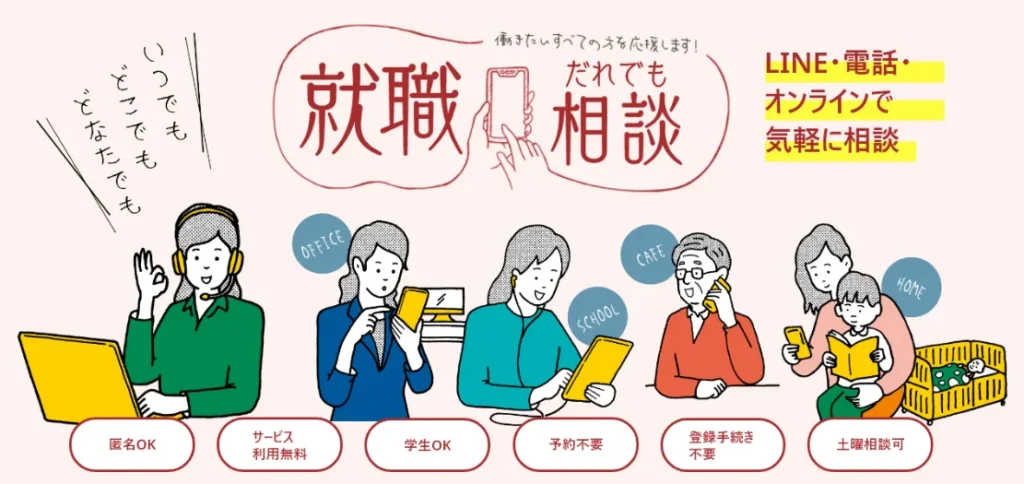 東京しごとセンターの「就職だれでも相談」が、無料でLINEやチャットでの相談に対応しています。